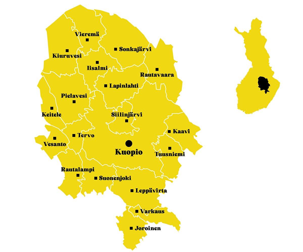 The capital city of Kuopio is one of the most attractive cities in Finland in terms of companies, jobs, studies and population growth. Varkaus is a technology town of large international companies. We take off from Siilinjärvi, and miracles are done in the Iisalmi region. And oh my Suonenjoki, strawberry fields forever! Watch the municipal videos and get to know us better!