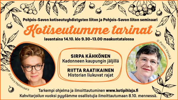 Kotiseutuseminaarin järjestävät Pohjois-Savon kotiseutuyhdistysten liitto ja Pohjois-Savon liitto.
