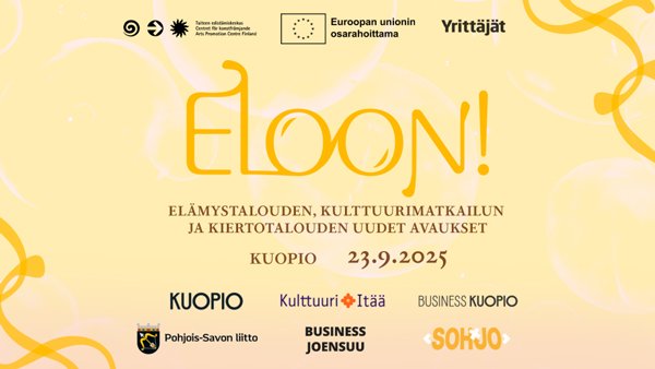 Eloon!-kiertue saapuu Kuopioon tiistaina 23. syyskuuta. Päivän aikana luovien alojen ja muiden alojen toimijat kokoontuvat Pohjois-Savon maakuntasaliin ideoimaan uusia ratkaisuja elämystalouden, kulttuurimatkailun ja kiertotalouden teemoihin. Kolmelle lupaavimmalle idealle myönnetään 1000 euron kannustinraha idean käynnistämiseen. Kannustinrahan tarjoavat Suomen Yrittäjät ja Taiteen edistämiskeskus.