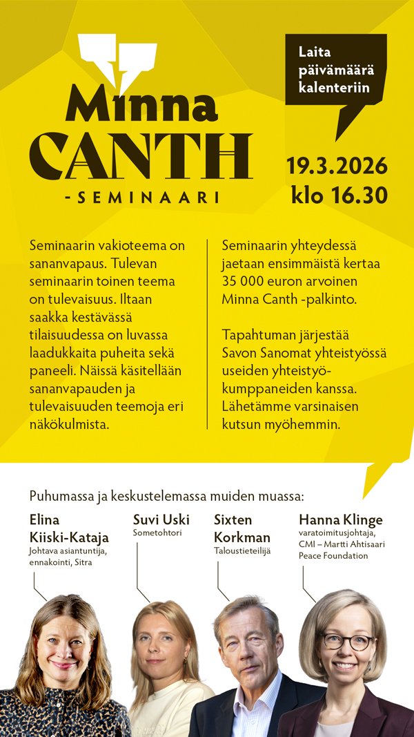 Seminaarin vakioteema on sananvapaus. Seminaarin toinen teema on tulevaisuus. Iltaan saakka kestävässä tilaisuudessa on luvassa laadukkaita puheita sekä paneeli. Näissä käsitellään sananvapauden ja tulevaisuuden teemoja eri näkökulmista.
