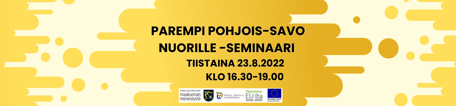 Tule kuulemaan Nuoret pohjoissavolaiset tulevaisuudentekijät - hankkeen loppuseminaariin, miten nuorten näkökulmasta maakuntaa ja nuorten osallistumismahdollisuuksia tulisi kehittää. Tilaisuudessa projektipäällikkö Heta Santamäki esittelee hankkeen tiedonhankinnan keskeisempiä tuloksia ja toimenpide-ehdotuksia. Puhujina vierailevat myös Pohjois-Savon liiton aluekehitysjohtaja Heikki Sirviö sekä POSOTE20-hankkeen osallisuus- ja järjestökoordinaattori Anne Aholainen.