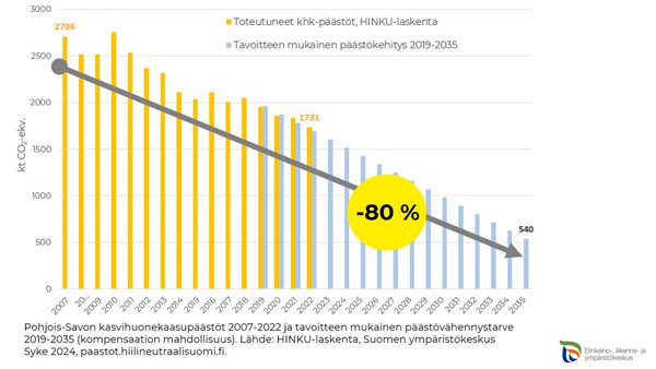 Pohjois-Savon ilmastopäästöt ovat laskeneet yli kolmanneksella vuoden 2007 jälkeen