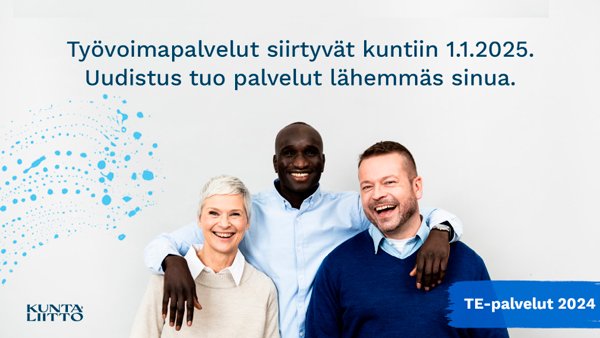 Julkisten työvoimapalveluiden järjestämisvastuu siirtyy valtiolta kunnille vuoden 2025 alussa. Uudistuksen myötä sekä henkilö- että yritysasiakkaiden työvoimapalveluista tulee osa jokaisen kunnan lakisääteisiä tehtäviä. Valtion työ- ja elinkeinotoimistot eli TE-toimistot lakkautetaan. Samalla reilut 4000 työvoimapalveluiden ammattilaista siirtyy liikkeenluovutuksella valtiolta kuntiin tai kuntayhtymiin.